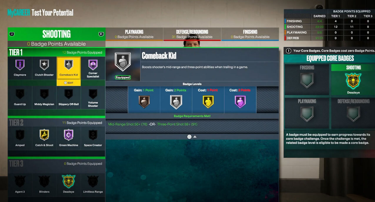 개별 배지 중 하나를 클릭하면 전체 NBA 2K23 배지 분석 및 분석을 볼 수 있습니다! 여기에는 각 배지에 대한 최고의 빌드 목록, 배지 팁, 배지 정보 등이 포함됩니다.