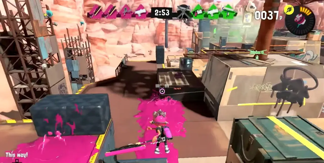 원거리 무기를 가지고 있을 때 고지를 확보하는 것이 더 많은 표면적을 덮음으로써 잉크를 쉽게 흩어지게 하는 데 도움이 되기 때문에 정말 유용합니다. 높은 위치에 도달할 때의 또 다른 이점은 라이벌 팀 구성원을 더 쉽게 찾아내고 빠르게 공격할 수 있다는 것입니다. 또한 고지대에 있으면 공격하기 어려운 대상이 될 것입니다.