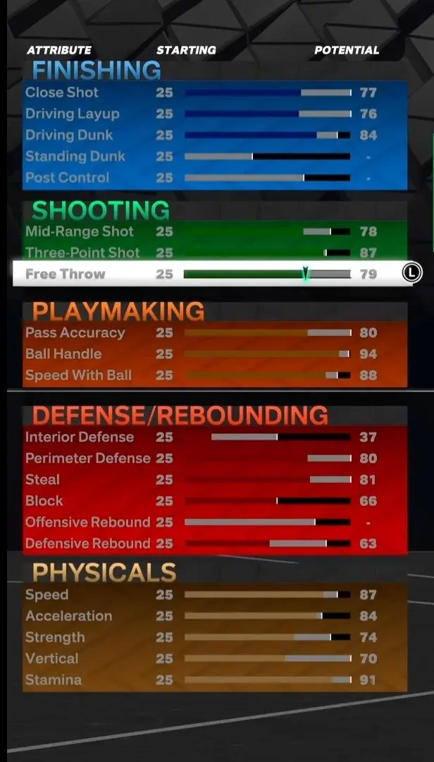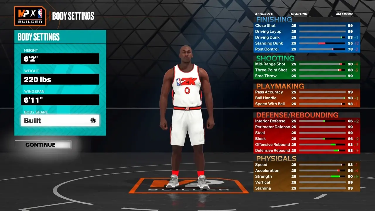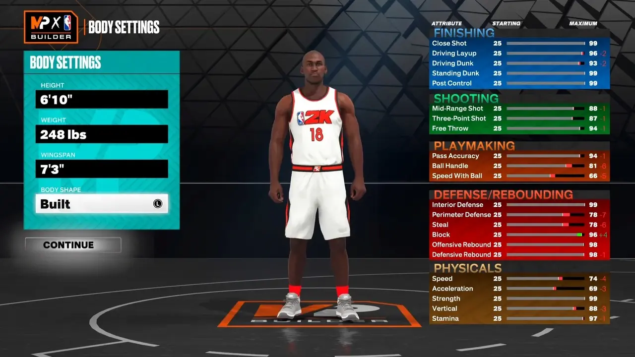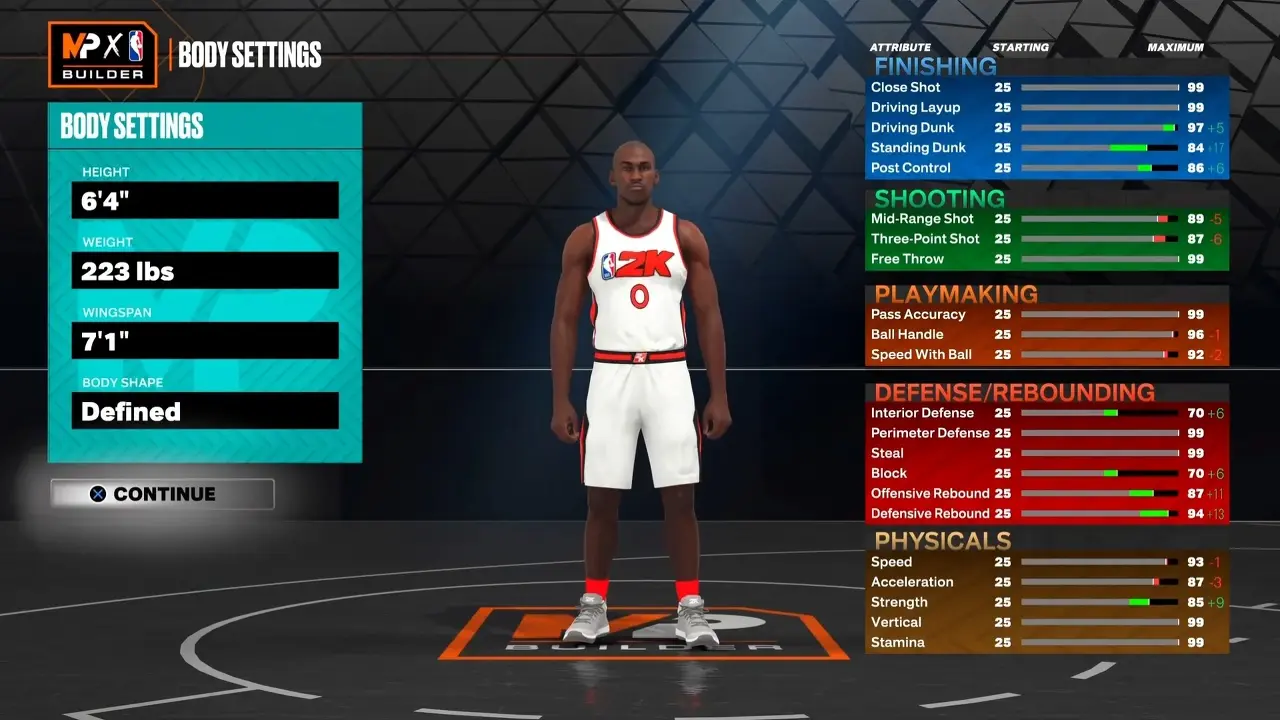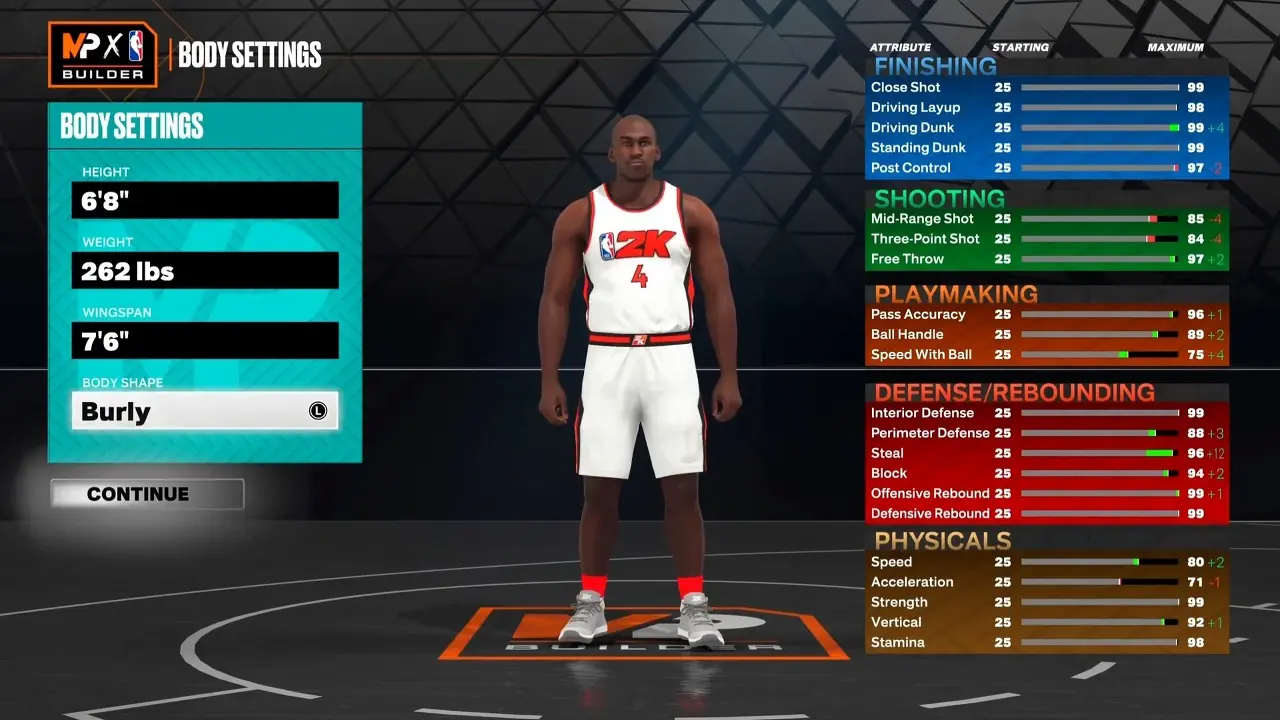 Playshot 빌드는 코트의 포인트 가드 위치에 중점을 둡니다. 이제 Playshot 빌드에 필요한 바디 설정과 속성에 대해 설명하겠습니다. 또한 구축에 필요한 인수를 수반합니다.