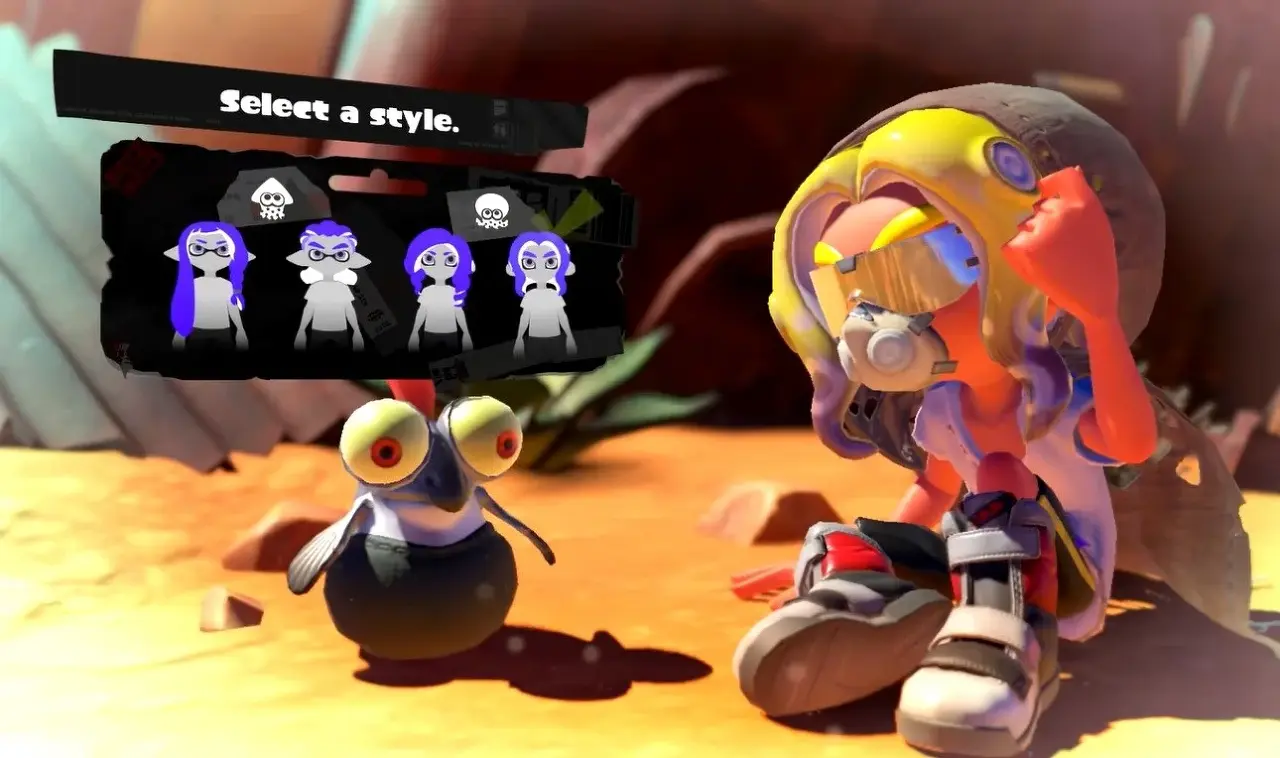 게임을 시작하면 Agent 3를 바로 사용자 지정할 수 있습니다. 게임은 4가지 옵션 중에서 스타일을 선택하라는 메시지를 표시합니다. 처음 두 가지 옵션은 Inkling 종에 속하고 후자의 두 가지 옵션은 Octoling 종에 속합니다.