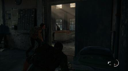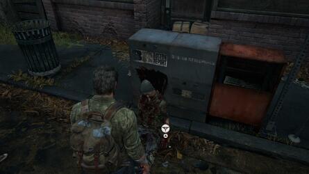 막힌 문 아래에 웅크리고 있으면 즉시 클리커를 만날 수 있습니다. 첫 번째 적은 튜토리얼이 될 것이므로 R1을 길게 눌러 듣기 모드를 활성화한 다음 뒤에서 기어들어가 스텔스 킬을 실행합니다. 다음 두 클리커를 몰래 지나치거나 죽이도록 선택할 수 있습니다. 탄약을 절약하려는 경우 그냥 지나치는 것이 좋습니다.