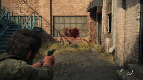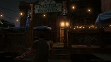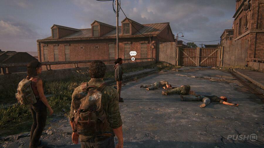 주유소 방향으로 언덕을 내려가 아르마딜로 극장으로 향하는 길을 따라 우회전하세요. Tommy는 왼쪽 골목으로 가라고 조언할 것이므로 그의 지시를 따르십시오. 감염자에게 매복을 당할 수 있으므로 사각형 버튼을 탭할 준비를 한 다음 골목길을 따라 Pistol Cantina로 이동합니다.