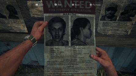 이전 Artefact 를 발견한 곳에서 앞으로 이동하고 바로 앞에 있는 핀보드와 상호 작용합니다. Marlene에 대해 조금 더 자세히 알려주는 Wanted Poster 를 받게 됩니다.