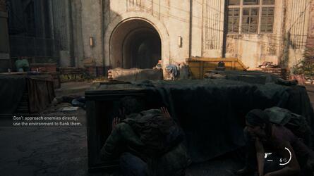 Tess는 당신이 이 안뜰 지역에서 싸우는 깡패들의 측면에 위치하도록 지시할 것이므로 상자와 상자를 엄폐물로 사용하여 각도를 확보한 다음 헤드샷을 사용하여 사용하는 탄약을 최소화하십시오. 그들이 죽으면 테스를 따라 다른 골목으로 가십시오.