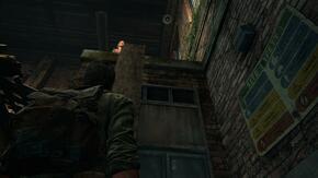 계단 상단의 왼쪽에 있는 건물로 몰래 들어가 가능한 경우 경비원을 은밀히 죽이고 싶을 것입니다. 다행히 Marlene이 도와줄 것입니다. 건물을 잠입하여 길을 따라 보급품을 모은 다음 창을 통해 밖으로 나가십시오. 가능하면 스텔스 킬을 사용하는 것을 잊지 마십시오. 벽돌과 병을 사용하면 경비원을 다른 위치로 끌어당겨 점프할 기회를 얻을 수 있습니다.