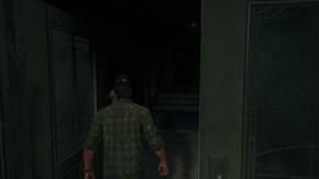 복도 끝에는 나무 기둥이 길을 막고 있습니다. 삼각형으로 움직인 다음 틈을 꾹꾹 눌러주세요. 동료 생존자가 당신에게 그들을 도와달라고 간청할 것이며, 당신은 그들의 요청을 무시하거나 그들을 쏘도록 선택할 수 있습니다. 바닥에서 탄약을 집는 것을 잊지 마십시오.