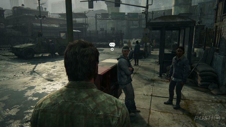 시민들이 무릎을 꿇고 있는 지역을 지나면 검문소 맞은편에 신문 자판기가 있고 그 근처에 부부가 서 있습니다. 가까이 다가가면 조엘을 알아볼 것입니다. 선택적 대화 를 위해 그들과 상호 작용하십시오 .