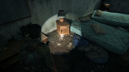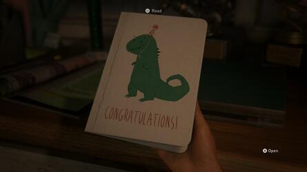 사라의 침실에서는 거울을 보고 전화기와 상호작용을 시도할 수 있습니다. 침대 맞은편에는 수집할 수 있는 것은 아니지만 집어 들고 읽을 수 있는 생일 카드가 있습니다. Last of Us에는 이와 같이 상호 작용할 수 있는 개체가 많이 있으므로 이를 검사하는 데 익숙해지십시오.