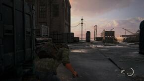 창고의 1층으로 내려가 금속 로프 체인을 사용하여 큰 판금 문을 엽니다. 지금까지 게임에서 가장 어려운 전투 중 하나인 조선소 지역으로 자동으로 이동하게 됩니다.