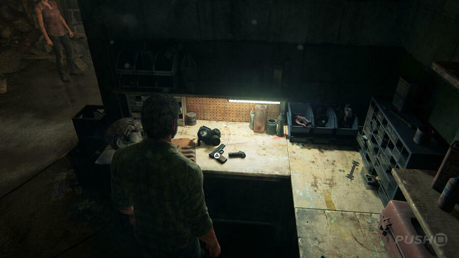 Tess의 지시에 따라 9mm 권총 , 토치 및 방독면 이 포함된 작업대 에서 장비를 직접 찾을 수 있습니다.
