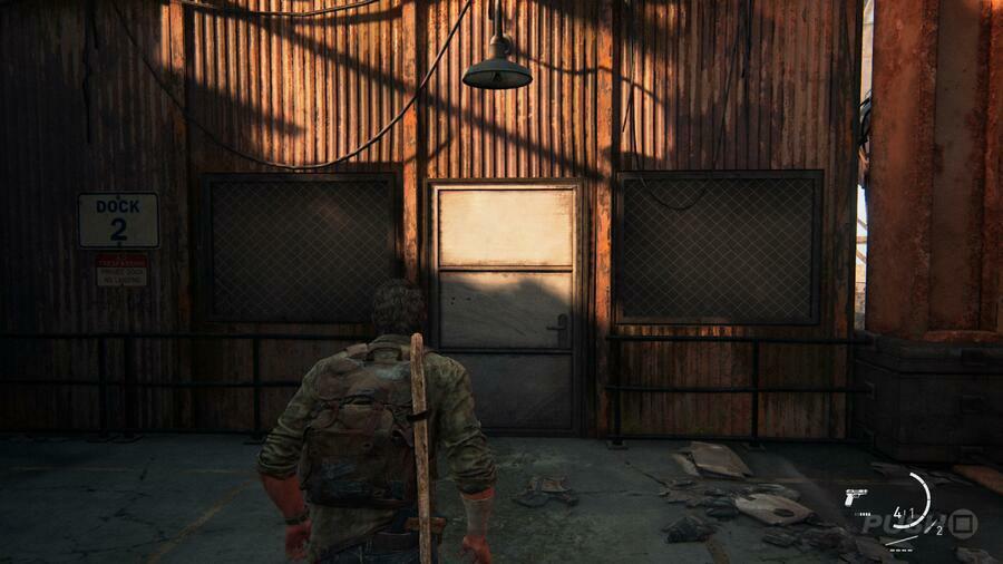 그것들을 모두 처리하면 Dock 2 표지판이 표시된 건물 끝에 잠긴 문이 있습니다. 하지만 아직 통과하지 마세요.