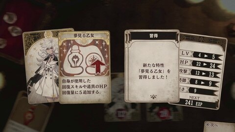 또, 이번 작품부터는, 쓰러뜨린 마물을 카드에 봉쇄해, 배틀중에 스킬로서 사용할 수 있다. 카드화한 마물을 캐릭터들에게 세트하는 것으로 배틀로 사용할 수 있게 되지만, 같은 마물 카드를 중복해 세트 할 수 없다. 그 때문에 캐릭터에 더하고 싶은 스킬을 잘 검토하면서 세트 해 간다.