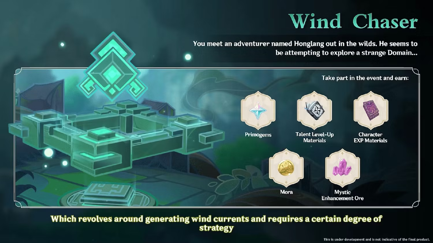 첫 번째만큼 흥미롭거나 깊이 있지는 않지만 다음으로 발표되는 이벤트는 "Wind Chaser"입니다. 이 이벤트에서 여행자는 바람이 가득한 영역을 탐험하면서 특별한 코인을 모으게 됩니다. 이것이 이 이벤트의 유일한 명백한 기능임에도 불구하고 버전 3.0에 있었던 많은 전투 중심 이벤트에 대한 흥미로운 변화입니다. 바람을 기반으로 한 퍼즐을 푸는 이벤트 자체의 주요 메커니즘은 지나치게 복잡해 보이지 않으며 이벤트가 발생하는 위치인 도메인은 Sumeru의 최신 기능을 많이 보여주지는 않지만 프리모젬, 모라타, 강화 및 레벨업 재료의 일반적인 보상으로 쉽게 완료하세요.