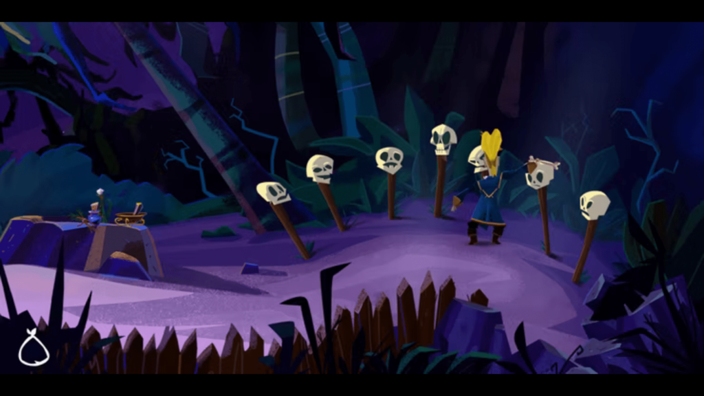 가이브러쉬로서 당신은 그들과 거래를 해야 합니다. 그러면 섬 주변을 돌아다닐 수 있습니다. Return to Monkey Island 에서 섬에서 6개의 해골을 찾을 수 있는 기회 입니다.