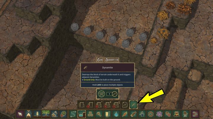 폭발물은 특별한 작업장에서 만들 수 있으며, 폭발물을 생산하려면 종이가 필요합니다. 폭발물이 충분하면 지형을 원하는 대로 수정할 수 있습니다.