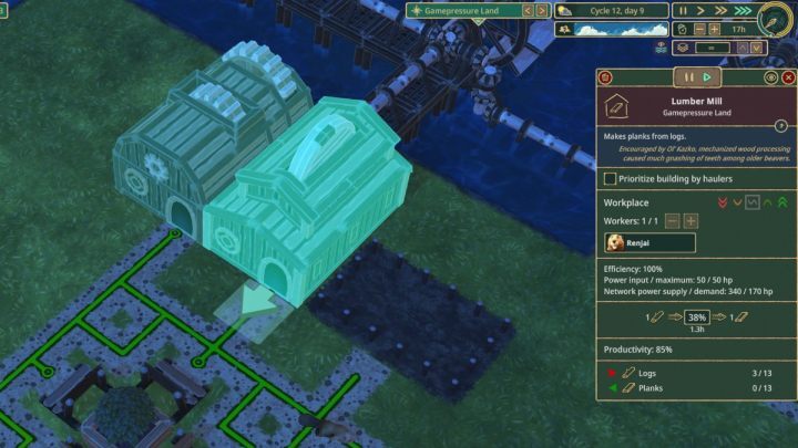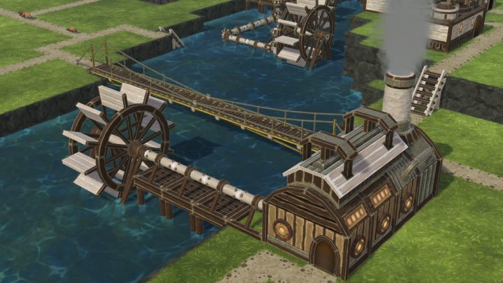 일부 생산 건물에는 전원이 필요합니다. 게임 초반에 물과 동력 바퀴로 동력을 공급할 수 있습니다.
