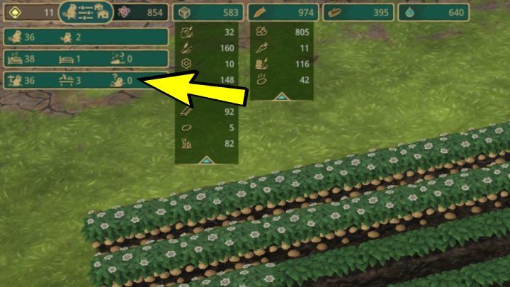 화면의 왼쪽 상단 모서리에서 현재 인구를 찾을 수 있습니다. 성체 및 청소년 비버의 총 수를 나타냅니다. 어린 비버가 일을 시작하려면 성숙하기까지 6일이 필요합니다.