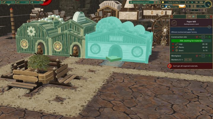 일부 건물은 연구 포인트로 잠금 해제된 구조물의 자원이 필요합니다. 예를 들어, 폭발 공장이 작동하려면 종이가 필요합니다 . 플레이어가 미리 계획을 세우고 특정 작업을 달성하기 위해 업그레이드해야 할 사항을 확인하는 데 시간을 들이는 것이 좋습니다.