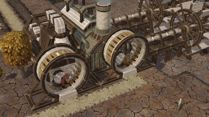 동력 바퀴는 장기간의 가뭄 중에도 식민지의 생산량이 떨어지는 것을 방지합니다. Mills는 계속해서 밀과 부들(cattails)을 갈 것이며 워크샵은 도시 확장을 위한 재료를 계속 생산할 것입니다.