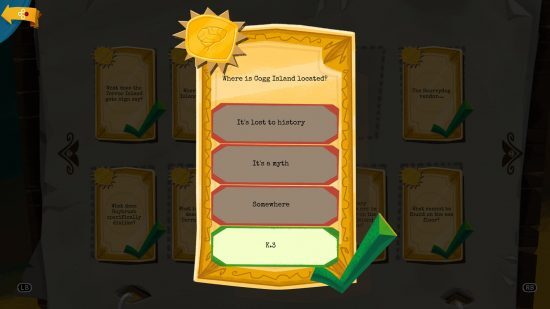 원숭이 섬으로 돌아가기 퀴즈 카드와 답변을 더 이상 찾지 마십시오 . Trivia 카드는 Return to Monkey Island의 주요 수집품으로, Mêlée Island의 Scumm Bar 테이블에 있는 퀴즈 책과 결합되어 Guybrush가 게임과 Monkey Island 시리즈 전반에 대한 질문에 답할 수 있도록 합니다. 퀴즈 카드는 Return to Monkey Island의 거의 모든 영역에 나타나며 키보드의 Tab 키를 누르거나 컨트롤러의 범퍼 두 개를 모두 누르고 있으면 방의 모든 대화형 자산을 강조 표시할 수 있습니다.