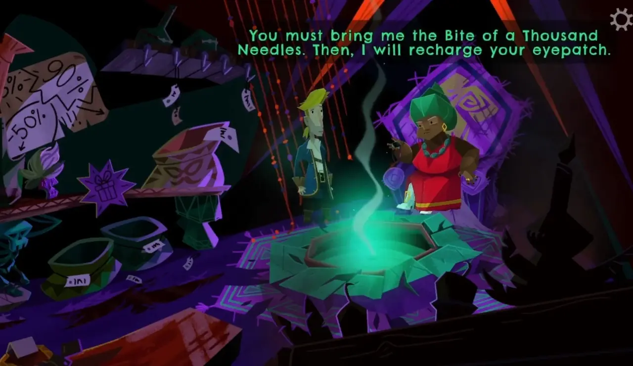 Return To Monkey Island는 멋진 캐릭터, 놀라운 대화, 매력적인 퍼즐로 가득한 포인트 앤 클릭 어드벤처 게임입니다. 가이브러쉬가 주인공으로 등장하는 원숭이 섬 시리즈의 최신작입니다. 당신이 수행하는 여러 퀘스트 중 하나의 퀘스트는 원숭이 섬으로 돌아가기에서 중요한 아이템인 천개 바늘의 한 입을 요구할 것입니다.