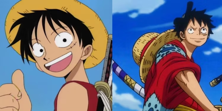 원피스 애니메이션 초창기의 루피와 가장 최근의 스토리 편인 와노 컨트리의 루피 비교