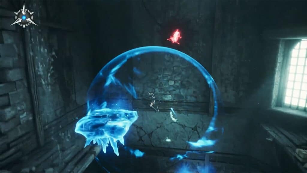 이 Ethereal Thorns는 Evocation Field 아래에 있지 않으면 접촉 손상을 일으킬 수 있으며, 그 이후에는 분해될 수 있습니다. 그들은 몇 초 후에 스폰되므로 근처에 머 무르지 마십시오. 길을 따라 길을 따라 코발트 광맥을 잡고 계단을 올라 다음 섹션으로 이동하십시오.