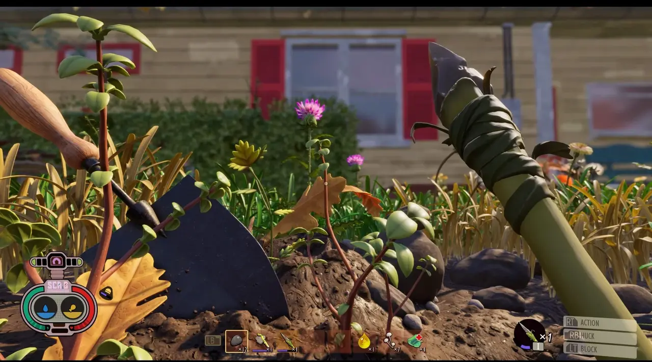 게임 플레이에 대해 자세히 알아보기 전에 먼저 타이틀의 생존 측면에 대해 설명하겠습니다. 기본적으로 뒤뜰에서 버그에 맞서 생존하는 동안 주의해야 할 네 가지 속성이 있습니다. 첫째, 움직임에 영향을 받는 스태미나 바가 있습니다. 싸우거나, 달리거나, 회피할 때 소모되므로 전투나 긴장된 상황에서 이것을 추적하십시오. 다음으로 체력 바가 있습니다. 이것은 캐릭터의 HP를 구성하는 매우 기본적인 스탯으로 공격에 의해 피해를 입으면 소모됩니다. 또한 적절한 보급품과 보호 장치 없이 위험한 지역을 탐색할 경우 건강이 환경적 위험에 영향을 받을 수 있습니다.