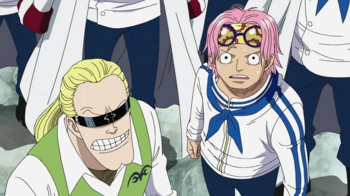 그러다 보니가 루피에게 나머지 선원들에 대해 물었을 때 바다의 기사도 함께 있는 것을 보고 깜짝 놀랐다.