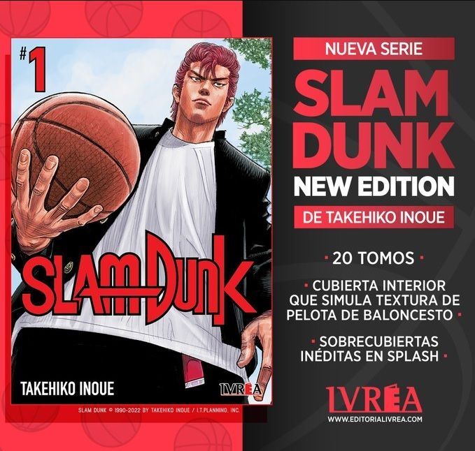많은 사람들이 Slam Dunk 의 절판 된 Kanzenban 판 의 새 판이나 재인쇄를 요구했습니다 . 이번 목요일 사설 Ivrea 는 이에 대한 해결책을 발표했습니다 . 인기 있는 이노우에 다케히코 만화의 새 판 은 B6 형식으로 20권 으로 구성 되며 미공개 더스트 재킷 과 농구공을 시뮬레이션하는 질감 의 내부 커버가 있습니다. 출판사는 이번 가을 에 이 판을 출판하기 시작 하고 시리즈는 격월로 출판 될 것 입니다.