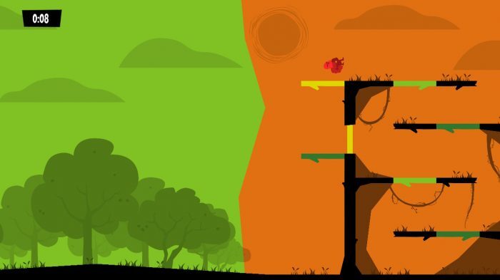 Runbow 를 더욱 독특하게 만드는 것은 색상 기반 플랫폼 메커니즘입니다. 각 지도의 주요 그라운드는 변경할 수 없는 플랫폼을 나타내는 단색 검정색으로 칠해져 있지만 지도 전체에 흩어져 있는 다른 많은 작은 플랫폼은 다른 색상을 가지고 있습니다. 게임의 배경도 색상이 지정되어 있지만 플랫폼의 색상과 일치하는 색상을 통해 끊임없이 변화하고 순환합니다. 배경색과 플랫폼 색상이 같으면 다음 변경까지 플랫폼이 완전히 사라집니다. 그 덕분에 Runbow 는 목표에 대한 최선의 경로에 대해 미리 생각하고 색상 배경에주의를 기울여야하므로 승리를위한 광란의 경주 (또는 싸움)를 만듭니다.
