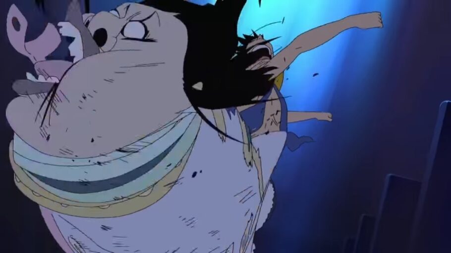 원피스 애니메이션 396화에서 루피가 텐류비토의 얼굴에 주먹을 날리는 장면이 나옵니다.