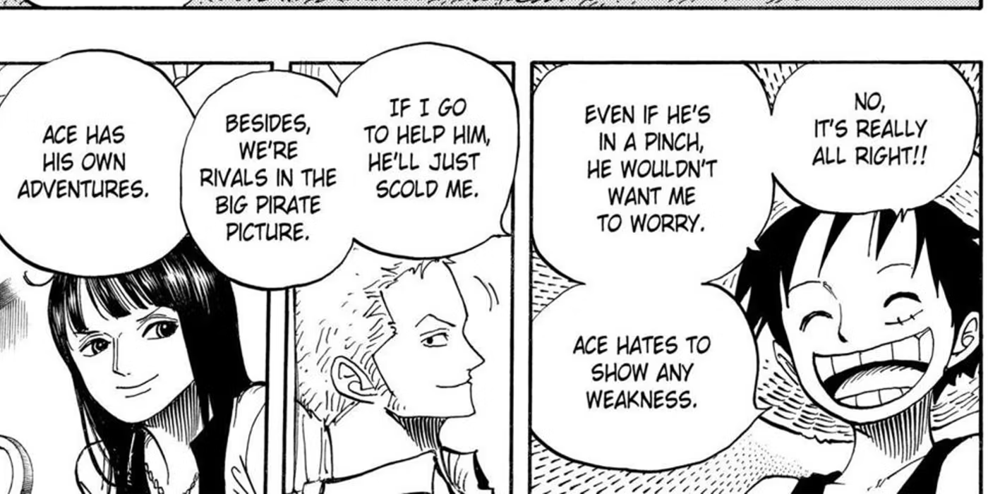 원피스는 루피가 지금까지 한 번도 언급하지 않은 가장 큰 실수를 지적한다. 동생 에이스가 위험하다는 사실을 너무 늦을 때까지 무시했다는 것이다.