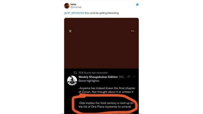 사실, 소셜 미디어에 떠도는 편집자의 메모 외에도 잃어버린 세기에 대한 토론을 볼 수 있는 이유에 대한 다른 단서가 있습니다. Oda Eiichiro와 Aoyama Gosho와의 인터뷰에서 Oda는 인터뷰 내용에서 중요한 한 가지를 언급했습니다. 그에 따르면 잃어버린 세기는 그가 풀게 될 다음 미스터리다.