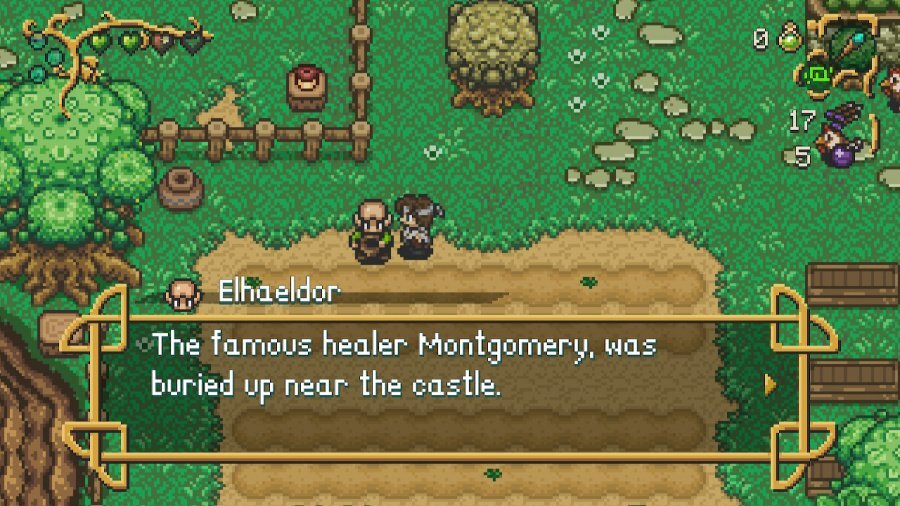 프레젠테이션과 관련하여 Airoheart는 과거로의 연결의 시각적 스타일을 도매로 올리는 것에 대해 부끄러워하지 않습니다. 색상 팔레트에서 캐릭터 스프라이트 워크, 적에게 던지기 위해 집어 올릴 수 있는 암석의 모양에 이르기까지 모든 것이 직접적인 자산 찢기로 거의 오인될 수 있습니다. 여기저기서 상황이 좀 더 창의적이 되지만 Airoheart를 차별화하고 고유한 정체성을 더 많이 부여하기 위해 더 많은 노력을 기울였으면 합니다. 나쁘게 보이지는 않지만 때로는 독창성이 부족하여 ROM 해킹을 하고 있다는 느낌을 받을 수 있습니다.