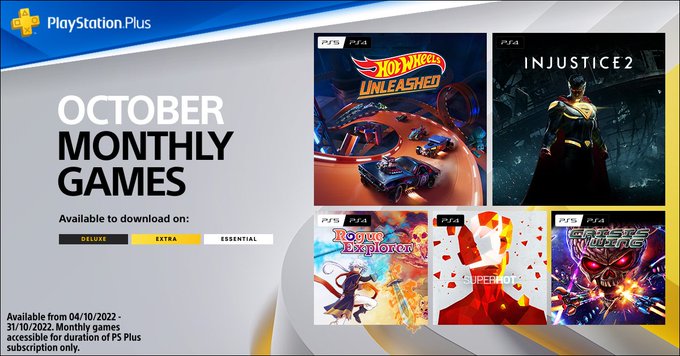 2022년 10월 무료 월간 PS Plus 게임 이 며칠 전에 공개되었으며 10월 4일부터 PS Plus 회원은 Hot Wheels Unleashed , Injustice 2 및 Superhot 을 추가 비용 없이 플레이할 수 있습니다. 이 세 가지 중 Hot Wheels Unleashed 만 기본 PS5 앱으로 사용할 수 있습니다. 전반적으로 탄탄한 라인업처럼 보이지만 일부 국가의 PS Plus 회원은 이번 달에 두 가지 보너스 게임에 액세스할 수 있습니다.