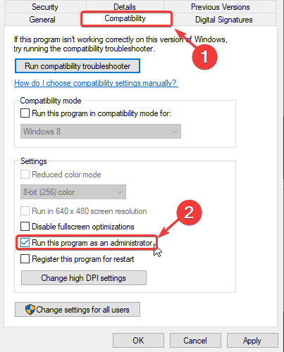 전체 화면 최적화를 활성화하고 관리자로 실행