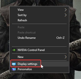- 바탕 화면을 마우스 오른쪽 버튼으로 클릭하고 디스플레이 설정 을 선택합니다.