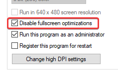 - 이제 "전체 화면 최적화 비활성화"를 확인하려면