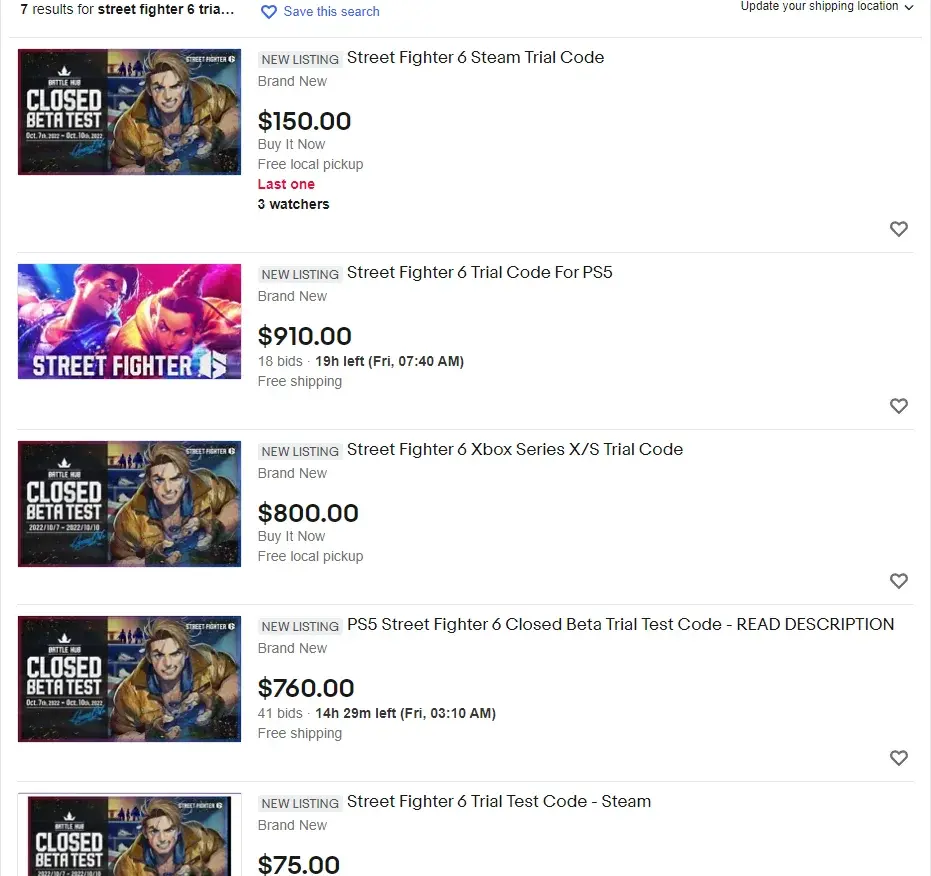 이러한 평가판 코드의 희소성과 게임의 인기로 인해 eBay에서 엄청난 가격에 판매되고 있습니다. 플레이어는 Street Fighter 6 평가판 코드에 수백 달러를 입찰하여 게임에 액세스하고 있습니다.