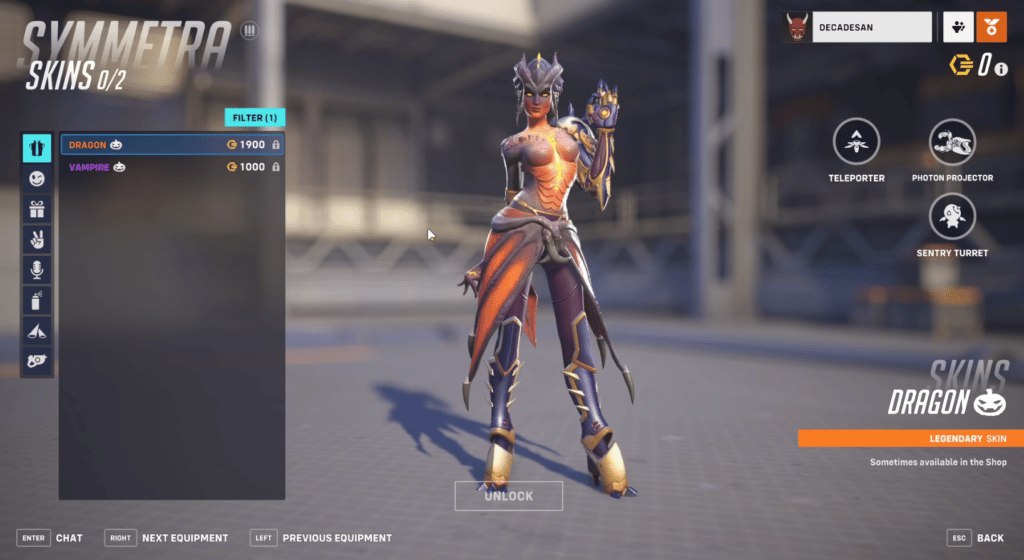 - Overwatch의 Halloween에서 발견된 스킨 중 Symmetra의 Dragon 스킨은 예술가들이 결코 볼 수 없을 것이라고 생각하는 것을 가지고 있다는 점에서 흥미롭습니다. 디아블로와 다른 중세 테마 게임의 한 페이지를 차지하는 이 스킨은 지도를 불태울 만큼 뜨겁습니다.