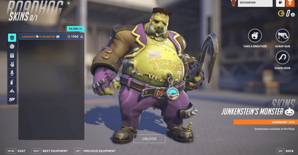 - 그 기간 동안 플레이어를 공포에 떨게 한 최초의 오버워치 할로윈 스킨 중 하나입니다. 할로윈의 고전 괴물인 프랑켄슈타인의 괴물과 흡사하며 모두에게 공포의 대상이 되기에 정말 적합합니다.