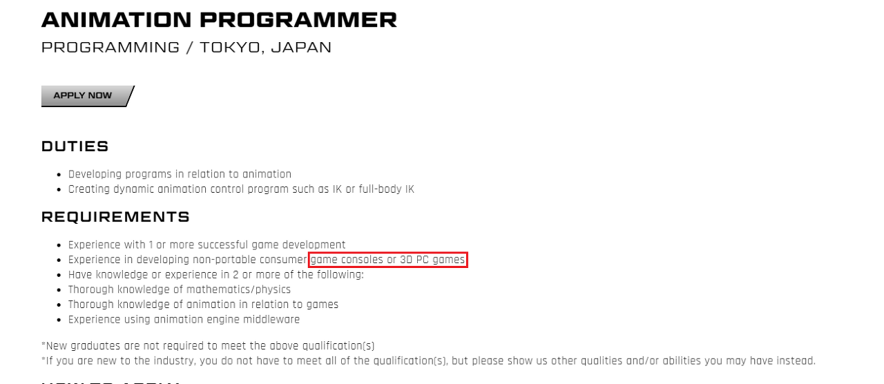 이는 애니메이션 프로그래머 , AI 프로그래머, 게임 프로그래머 등 의 직책에 대한 게시물을 통해 알 수 있습니다.