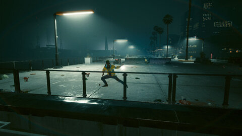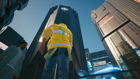 성지 순례 때 추천하는 것이 그 자체 즈바리 "엣지 건너편"이라는 사이드 작업. 「사이버펑크 엣지 러너즈」를 테마로 한 사이드 잡으로, 아로요 남쪽의 「H4 메가 빌딩」의 쓰레기통에 버리고 있는 BD(브레인 댄스)를 보는 것으로 스타트한다. 이 사이드 잡을 진행함으로써 애니메이션에서도 인상적이었던 데이비드 재킷을 입을 수 있다.