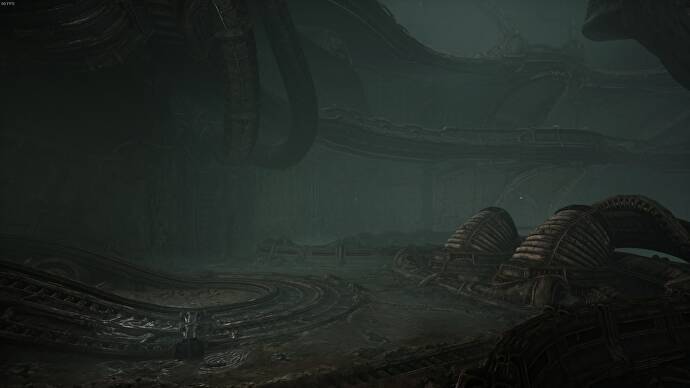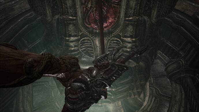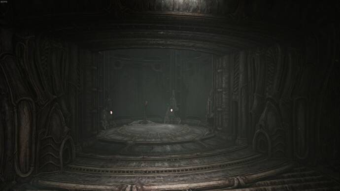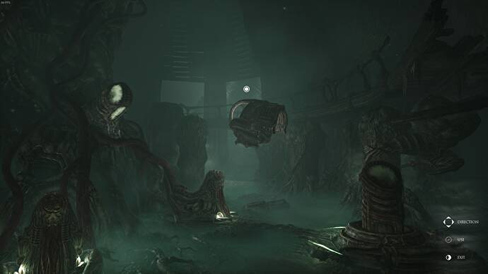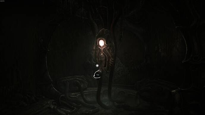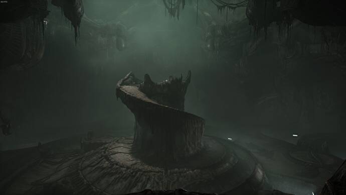 문을 통과하여 터널을 따라 내려가면 구조의 맨 아래에 나선형 경로가 있는 나타납니다. 이로써 Scorn의 프롤로그가 끝났습니다.