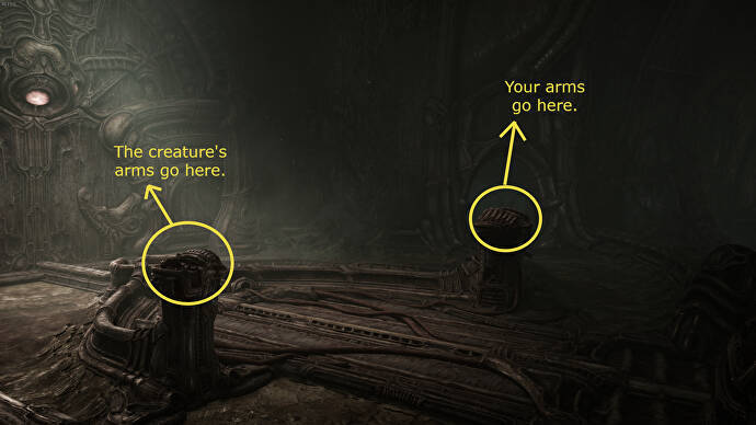 이제 마침내 모든 손가락을 안으로 밀어 넣어야 하는 최종 캡슐 바로 앞의 기둥으로 이동할 수 있습니다. 컷 장면이 이어지며 이는 Scorn의 Act 1 Part 2의 끝을 표시합니다.