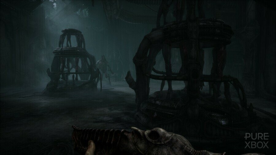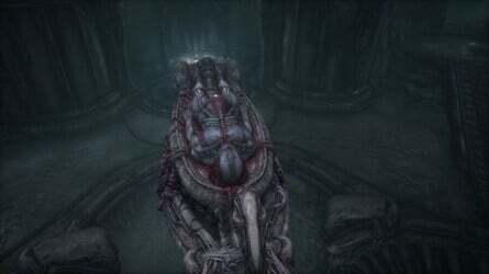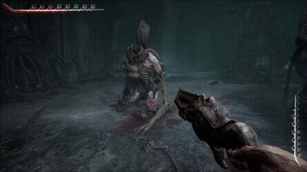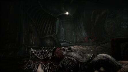 계단의 최상단 입구에서 기계에 연결된 두 개의 시체가 있는 방에 올 것입니다. 현재 절반이 혈액으로 채워진 컨테이너를 잡기 위해 먼저 오른쪽 몸체와 상호 작용하려고 합니다. 이제 바로 앞에 있는 복도를 따라 내려가십시오.