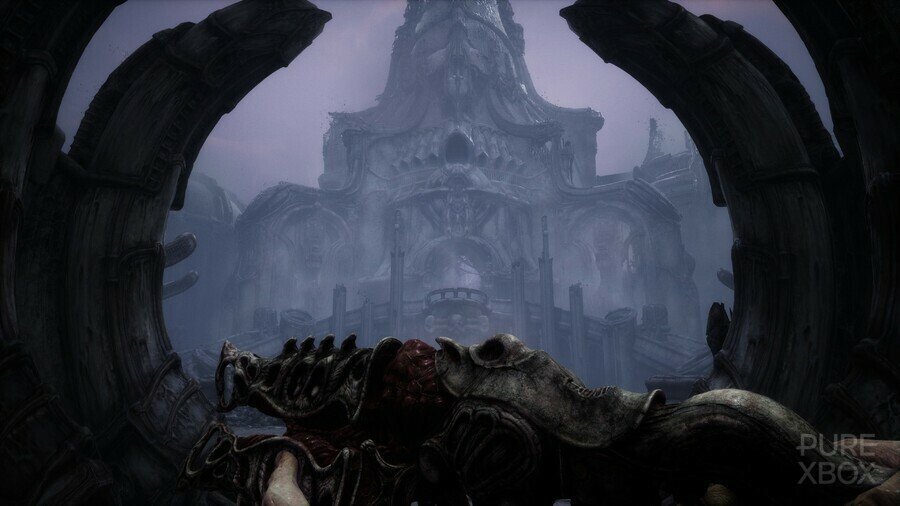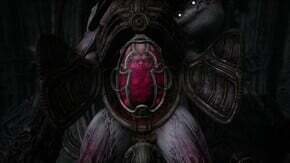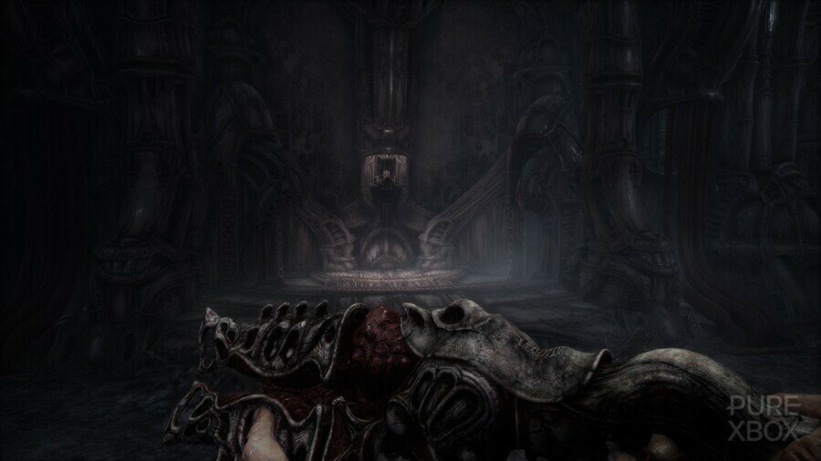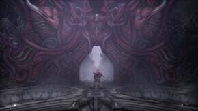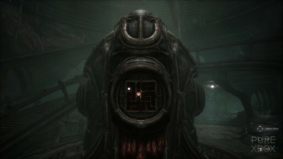 여기에서 거대한 외계인의 내부로 들어가면 세 개의 분리된 섹션이 있는 방의 콘솔이 나옵니다. 이 액트에서 우리의 임무는 이러한 각 영역에서 콘솔과 상호 작용하는 것이므로 짐승의 몸에 두 개의 진입점을 더 만들어야 합니다. 지금은 앞에 있는 콘솔과 상호 작용하여 앞에 있는 미로 퍼즐을 상위 레벨로 보냅니다. 이제 아래 그림과 같이 돌아서서 진입한 램프의 바로 왼쪽 출구로 나가십시오.