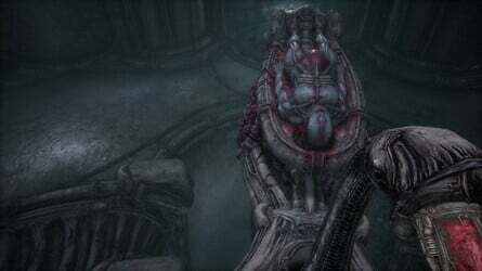 콘솔을 사용하면 외계인의 몸통에 구멍이 뚫릴 것입니다. 이제 우리는 아래로 내려가 우리가 만든 상처를 통해 들어갈 수 있습니다. 또한, 여기에서 다시 계단을 내려가면 침을 뱉는 한 명의 적에게 공격을 받을 수 있다는 점에 유의하세요!