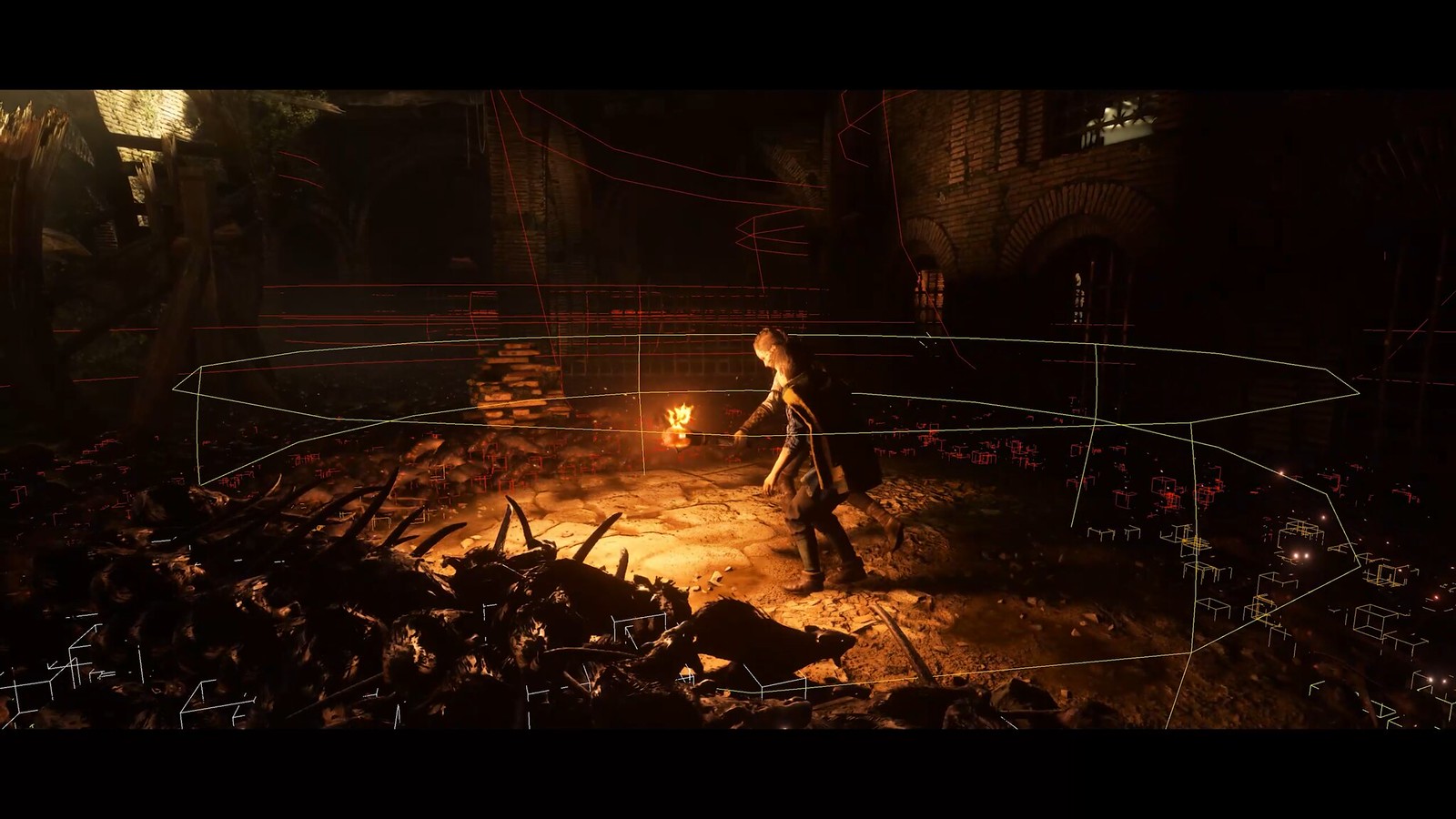쥐는 A Plague Tale의 핵심 기능이며, 이 두 번째 게임에서 우리는 쥐가 유발하는 공포와 트라우마를 다음 단계로 끌어올리기 위해 새로운 세대의 가능성을 최대한 끌어내고 싶었습니다. 화면의 쥐 수가 5,000에서 300,000으로 증가하여 60배가 되었습니다! 우리의 영웅들을 점점 더 억압하는 종말의 비전을 전달하기에 좋은 숫자입니다. 우리는 또한 그들의 움직임의 측면을 변경하여 거대한 파도처럼 보이도록 했습니다. 마치 쓰나미가 여러분을 덮치는 것과 같습니다. 우리는 자체 자체 엔진으로 작업하고 이 엔진에 의존하여 A Plague Tale에 완전히 특정한 요소의 이와 같은 도전적인 렌더링을 처리할 수 있어 행운입니다.